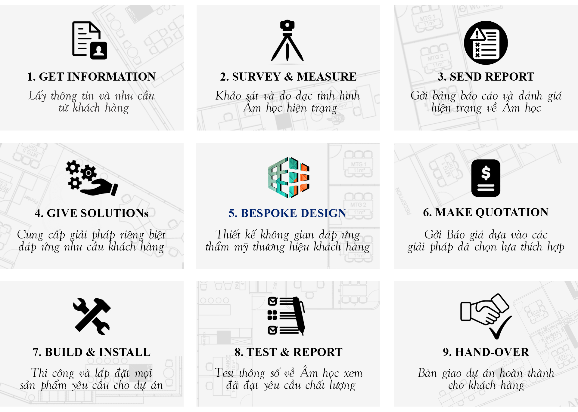 Do đó, các giải pháp âm thanh nên là một phần của quá trình thiết kế nội thất ngay từ đầu. Nó đòi hỏi sự hợp tác chặt chẽ giữa tất cả các nhóm liên quan để đạt được kết quả tốt nhất. Khi trường hợp này không xảy ra, thật tốt là bạn vẫn có cơ hội cải thiện âm thanh trong không gian của mình một cách sâu sắc với các giải pháp được thiết kế riêng phù hợp.